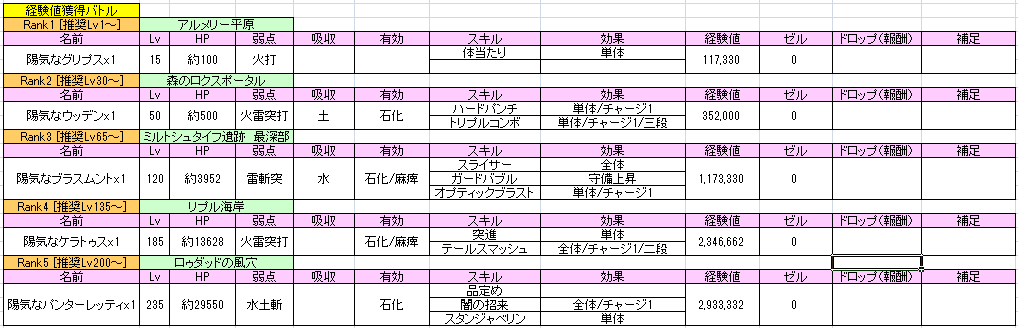 経験値は月額フル&ペット一匹戦闘参加時のデータで、Lvペナルティ減少分は考慮して戻してあります。(ドピもLvUPボーナスも無し)