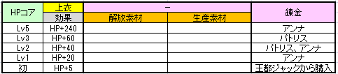 201607/10 HPコア コア 0 錬金のリストも載せましたが、HPコアはまずLv7以上しか使わないかと思います。 特別強化レシピで作ってみましたが素材の消費の割に数が出来ず割に合わないと思いました。 そのまま普通にLv7作った方が良かった(;・∀・) [0回]PR